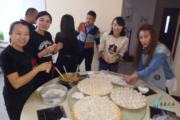 會議結(jié)束后,公司領(lǐng)導(dǎo)和善愛之舟小組成員共同配合準(zhǔn)備晚餐,大家情緒高漲,包餃子的樣子各式各樣精美別致,此次活動增強(qiáng)了團(tuán)隊(duì)的團(tuán)結(jié)協(xié)作能力,同時(shí)也增進(jìn)了彼此間的感情。
