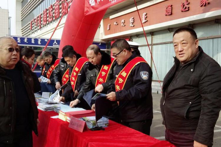 客運南站楊經(jīng)理發(fā)放安全宣傳資料,讓大家提高安全意識。