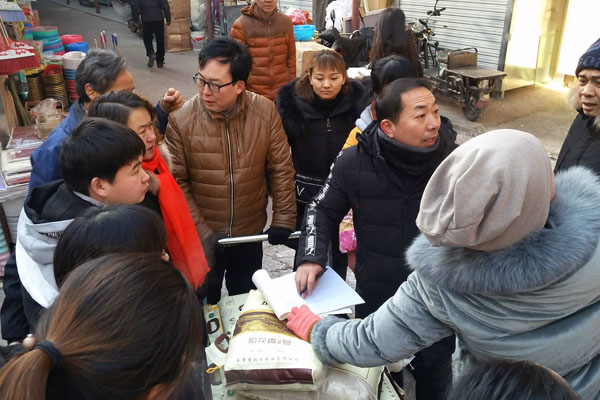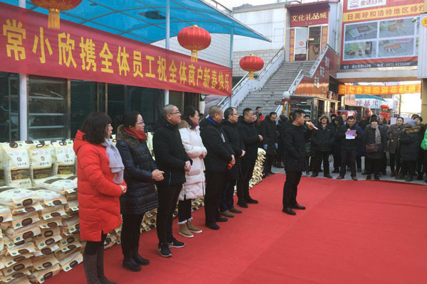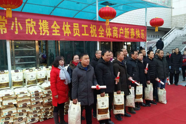 儀式結(jié)束后,所有商戶(hù),工作人員盡然有序的離場(chǎng),由經(jīng)營(yíng)發(fā)展部門(mén)和環(huán)境服務(wù)部同事共同分成四個(gè)小組逐一將大米送到每家每戶(hù)