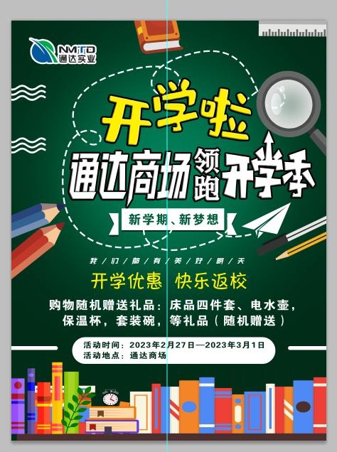 為迎接中小學(xué)學(xué)生返校,通達(dá)商場此次營銷優(yōu)惠活動(dòng),給學(xué)生提供最物美價(jià)廉的各類學(xué)習(xí)用品,讓同學(xué)們有一個(gè)愉快的新學(xué)期。