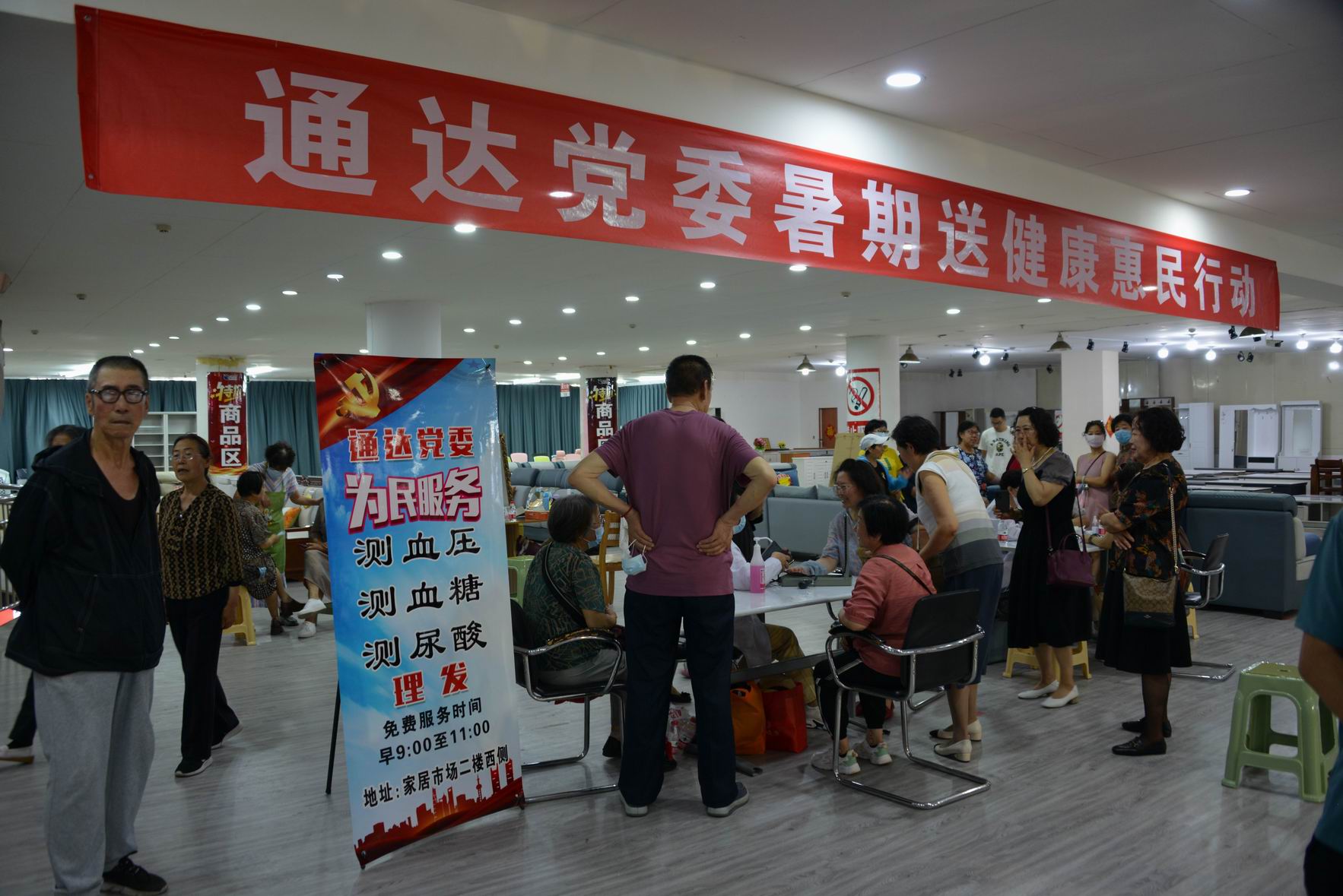 7月18日上午通達(dá)公司黨委組織善愛之舟關(guān)愛長者志愿會開展了一場以“通達(dá)黨委暑期送健康惠民行動”為主題的志愿服務(wù)活動。在南站家具市場,志愿者們早早將活動場地布置妥當(dāng),為周邊的老百姓提供測血壓、測血糖、測尿酸、理發(fā)等公益性志愿服務(wù)。志愿者們用她們的熱心與愛心,如一縷清風(fēng)般為本以炎熱的天氣帶來了一絲清涼。